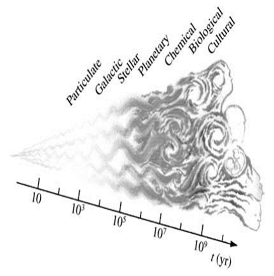 El universo está repleto de sistemas complejos en evolución -el propio universo puede considerarse un sistema en evolución (Figura 1)- y una de las principales tareas de la ciencia unificada es comprender y codificar la dinámica subyacente que genera los sistemas en evolución y la complejificación resultante, ya se trate de la emergencia espontánea en sistemas autoorganizativos o de mecanismos de ordenación subyacentes delineables que rozan las «leyes de la naturaleza» operativas. A partir de estudios como A unifying concept for Astrobiology de E.J. Chaisson, que define cuantitativamente los sistemas en evolución basándose en el flujo de energía, de modo que todos los sistemas ordenados -desde los planetas rocosos y las estrellas brillantes, hasta las abejas zumbadoras y las secuoyas- pueden juzgarse empírica y uniformemente midiendo la cantidad de energía adquirida, almacenada y expresada por esos sistemas [1], hasta el modelo universal del biofísico Antonis Mistriotis que describe la estructura y las funciones de los sistemas vivos [2], en el que los sistemas en evolución como la vida se identifican como «fenómenos termodinámicos alejados del equilibrio que implican la creación de orden (reducción de la entropía interna) mediante la acumulación y el procesamiento de información», existe una sólida base dentro de este campo de investigación para comprender la física de la vida y de los sistemas complejos en evolución en general.