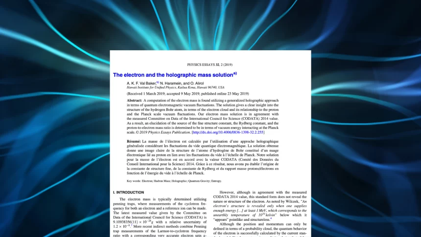 Descarga el artículo aquí: «The Electron and the Holographic Mass Solution».