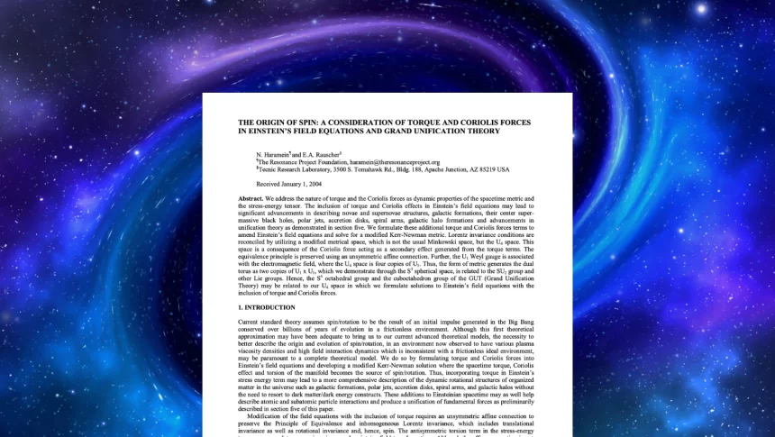 Resumen: Las principales fuerzas que impulsan la dinámica de agujeros negros, estrellas de neutrones, púlsares, cuásares y supernovas tienen ciertos puntos en común con los mecanismos de sistemas menos tumultuosos como las galaxias y la dinámica estelar y planetaria. Implican procesos gravitatorios, electromagnéticos y de partículas individuales y colectivas. Examinamos las estructuras coherentes colectivas del plasma y sus interacciones con el vacío. En este trabajo presentamos una ecuación de equilibrio y, en particular, el equilibrio entre sistemas gravitatorios extremadamente colapsantes y sus medios de plasma energéticos circundantes. De particular interés es la dinámica de los medios plasmáticos, la estructura del vacío y el acoplamiento de las fuerzas electromagnéticas y gravitatorias con la inclusión de los fenómenos de torsión y Coriolis, tal como describe la solución de Haramein-Rauscher a las ecuaciones de campo de Einstein. La naturaleza exótica de los agujeros negros complejos implica no sólo al propio agujero negro, sino también al medio plasmático que lo rodea. Las principales fuerzas implicadas son intensas fuerzas gravitatorias de colapso, potentes campos electromagnéticos, carga y momento angular de espín. Encontramos soluciones plasmáticas solitónicas o magnetoacústicas a las ecuaciones relativistas de Vlasov resueltas en las proximidades de las ergósferas de los agujeros negros. Se dan estados colectivos fonónicos o plasmónicos de los campos plasmáticos. Utilizamos el formalismo Hamiltoniano para describir los estados colectivos de la materia y los procesos dinámicos dentro del plasma permitiéndonos deducir una posible estructura polarizada del vacío y una física unificada.