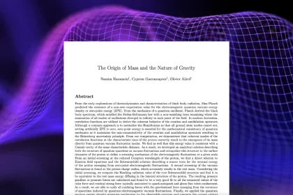 « L’Origine de la Masse et la Nature de la Gravité », Une Publication Importante !